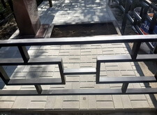 На ткань рассыпаем пескобетонную смесь, после чего закладываем площадь места захоронения бетонной плиткой. Покрытие замываем, затем ждём, пока раствор засохнет и схватится. Все работы по укладке покрытия были проведены при помощи уровня, так что какие-либо неровности или впадины на плитке абсолютно исключены.