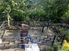 Когда подготовительные работы были окончательно завершены, мы уложили территорию участка геотекстилем, предварительно прорезав в нём отверстие для столика.