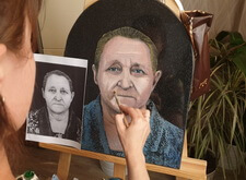 Первый этап работы – компьютерная обработка. Мы заменили одежду усопшей; удалили с головы платок, открыв полностью голову покойной; а также провели детальную доработку её лица: удалили большое количество морщин, сохранив черты.