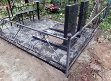 В данном заказе нам предстояло полностью благоустроить место захоронения. Клиент пожелал заменить на участке всё, кроме ограждения. Нам предстояло изготовить два классических гранитных памятника с прямоугольными цветниками, а также выложить территорию могилы брусчаткой. Первым делом мы приехали на кладбище и оценили исходное состояние места захоронения: оно поросло сорняком, а потому выглядело заброшенным.