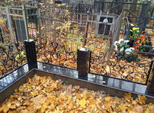 В этом заказе необходимо было изготовить и установить комбинированную ограду. Гранитные столбы, гранитная подложка и облицовка и металлические пролеты из кованных элементов. В дальнейшем необходимо будет поднять уровень пола до одного уровня с подложкой и установить памятники.