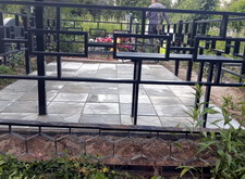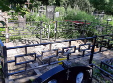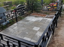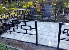 Первое, что мы сделали на могиле – уборку. Тщательно очистив место захоронения от сорной травы и прочего мусора, мы взялись за монтаж ограждения. Ножки оградки вбили в специальные ямы, а по нижней её части проварили металлический борт, служащий одновременно и ограничителем для плитки, и дополнительным каркасом, придающим жёсткость самой конструкции.