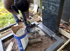 На этот раз клиент обратился к нам повторно – он попросил восстановить памятник на могиле, где мы сравнительно недавно сажали газон. Приехав на место захоронения мы оценили фронт работы: памятник действительно немного покосился, а балки цветника разъехались в разные стороны.