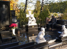 На последних фотографиях представлен внешний вид места захоронения на момент сдачи объекта: прилежащая территория приподнята, мраморные элементы мемориальной композиции покрыты гидрофобным раствором, портрет усопшего и его статуя приведены в надлежащий вид.