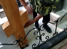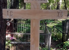 Первым делом мы решили обработать деревянный крест: с него сняли навершие а затем тщательно отшлифовали.
