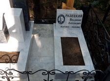 Так выглядело место захоронения на момент окончания работы: деревянный крест покрыт защитным раствором; мраморные изделия отшлифованы и покрыты гидрофобной субстанцией, стыки элементов промазаны белым герметиком; полые столбики, восстановлены; в цветнике заменена земля и посажен газон.