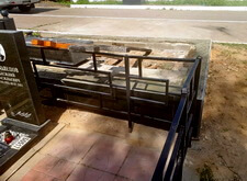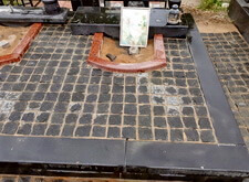 Когда работа с основанием практически завершена, переходим к следующему этапу – укладке гранитной брусчатки по периметру места захоронения. Во это же время покрываем гранитными плитами и залитый бетоном верх каркаса