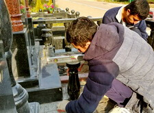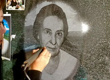 На начальном этапе гравировку портрета осуществляет станок. После этого ручной мастер завершает образ и зачищает портрет для покраски.