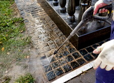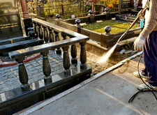 Приступаем к уборке участка. Смыли кёрхером строительную пыль, протёрли гранит.