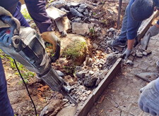Клиент выразил желание всё бетонное на этом участке сломать и отстроить заново. Цоколь, равно как и фундамент, мы разобрали.