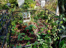 Данное место захоронения оформлено очень просто: простой памятник на двух покойных, отсутствие наземного покрытия, а также простая металлическая оградка. Цветник выполнен в форме обычной кадки, а помимо него на участке присутствует только одно естественное украшение – дерево.