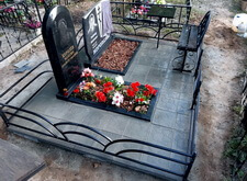 Клиент обратился к нам с просьбой уложить территорию могилы бетонной плиткой, а также оградить периметр места захоронения небольшим бордюром. Осмотрев участок, мы сразу же принялись за работу. На фотографиях ниже запечатлён внешний вид могилы на момент нашего первого приезда.