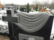 Мы изготовили саму гранитную плиту, вырезав фигуру православного креста и траурное покрыло.