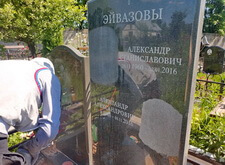В ходе этой работы нам предстояло заменить два уже нанесённых на памятник портрета. Делавшие их люди не согласовывали изображения с клиентом, и привезли на могилу памятник с уже выбитыми фотографиями и надписями. К нам заказчик обратился с просьбой всё-таки сменить фотографии, а так надгробье смотрелось изначально.