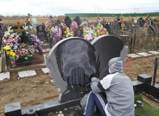Далее мы полностью заполировали старый портрет и всю надпись, сделали это прямо на кладбище, не перемещая сам памятник.